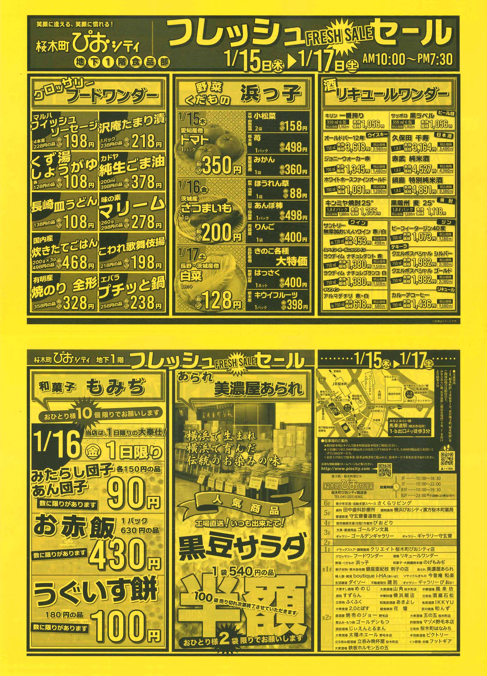 フレッシュセール1/15(木)~1/17(土) ぴおシティ地下1階食品部